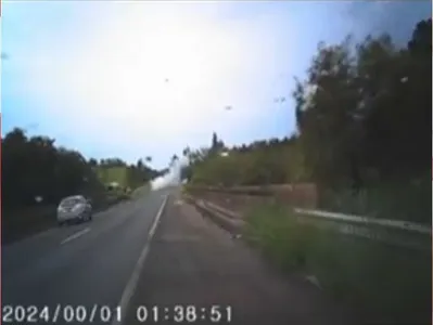 Na sequência, ocorre uma forte explosão. A motorista aciona a Polícia Militar (190) imediatamente e relata a cena: "Três caras armados com metralhadora, explodiram uma bomba aqui, estão atravessando a estrada de um lado para o outro".