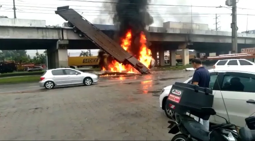 Na manhã de terça-feira (14), por volta das 8h, um caminhão caiu de um viaduto e pegou fogo às margens da BR-101, em Palhoca, na Grande Florianópolis. O Corpo de Bombeiros e a Polícia Rodoviária Federal (PRF) foram acionados para atender a ocorrência.