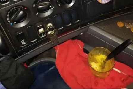 Nesse instante, os policiais federais foram até a cabine e encontraram o homem aparentemente “desorientado, sem equilíbrio e exalando odor de cachaça”. Dentro da cabine foram encontradas latas de cerveja, uma garrafa de cachaça e um copo de caipirinha.