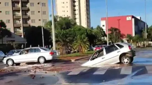 Carro é ‘engolido’ por cratera em Uberlândia; veja