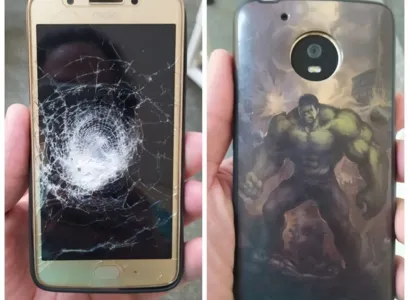A foto de um celular danificado por um disparo de arma de fogo viralizou essa semana nas redes sociais. O que chamou a atenção dos internautas foi que a capinha do aparelho, do personagem de desenho animado 'Hulk,' é que não permitiu que a bala penetrasse na vítima, um homem que não teve a identidade divulgada.