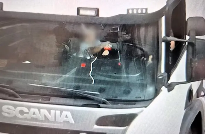 Criança é flagrada "dirigindo" caminhão enquanto motorista usa celular