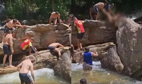 Criança morre após ficar com pé preso em fenda de cachoeira