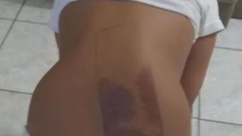 A criança acabou dormindo, quando utilizava o celular, e passou a noite em cima do aparelho. E então, ao acordar estava com uma marca nas costas que começou a doer momentos depois.