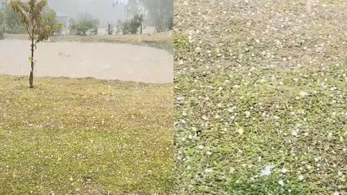Queda de granizo foi registrada no município de Luiz Alves, no Vale do Itajaí, no final da tarde deste sábado (31). O fenômeno confirma as projeções da Defesa Civil de Santa Catarina, que atribui a instabilidade à atuação de um ciclone extratropical em alto mar.