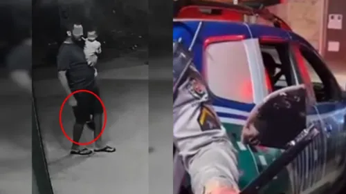 Imagens de câmeras de segurança registraram o momento em que o agressor aparece com a criança nos braços, fazendo ameaças. Nas gravações, uma mulher tenta acalmá-lo e pede para que ele não cometa nenhuma violência.