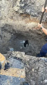 Através de um cano no chão da garagem de um prédio, os bombeiros conseguiram falar com o homem, de 30 anos, que estava consciente. Através de teste de sons e uma mangueira de canalização, a equipe localizou o ponto exato em que homem estava. Um buraco no chão foi aberto com uma retroescavadeira da prefeitura.