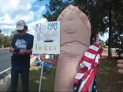Uma manifestação contra Donald Trump em Fairhope, no Alabama (EUA), terminou com a prisão de uma mulher de 61 anos que protestava vestida com uma fantasia inflável em formato de pênis. A detenção, ocorrida em 18 de outubro de 2024, voltou a ganhar repercussão nesta semana após a divulgação de imagens da câmera corporal de um policial, que mostram o momento da abordagem.