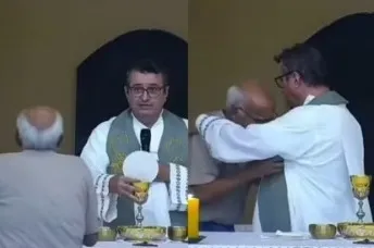 Idoso abraça padre após receber notícia da morte do neto durante a missa; veja vídeo