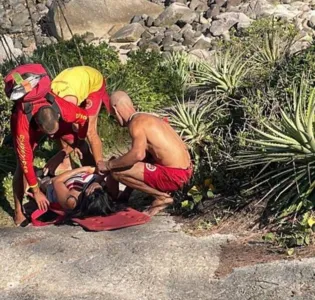 A vítima foi socorrida incialmente pelos Guarda Vidas Civis Voluntários (GVCV), que a retiraram de um local de difícil acesso de maca. Depois, ela foi conduzida pelo Corpo de Bombeiros até a policlínica do município.