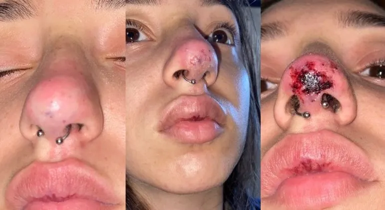 Uma jovem de 22 anos usou suas redes sociais nos últimos dias para compartilhar o drama que está vivendo após complicações em um procedimento estético de rinomodelação que quase resultou na perda de parte do nariz.
