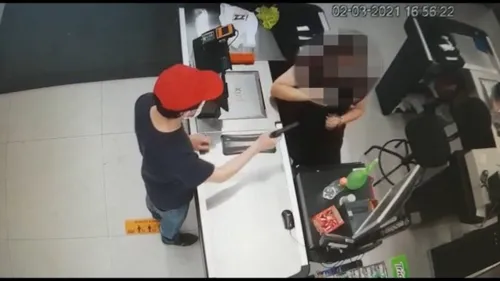 De boné vermelho, máscara branca, camiseta azul, jeans e tênis chegava aos locais, comprava itens, ia até o caixa, pagava em dinheiro e quando a operadora se preparava para dar o troco, tirava a arma da cintura e pedia o que estava no caixa. Os assaltos foram registrados por câmeras de segurança. Agiu da mesma forma nos dois supermercados e na farmácia. Roubou R$ 1,4 mil e foi preso com R$ 655. O destino do restante do valor ainda é um mistério, segundo o delegado Diogo Ferreira: