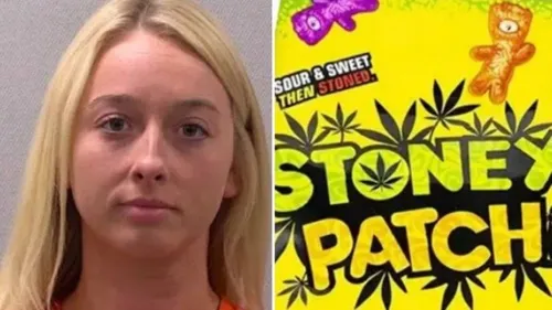 De acordo com as autoridades, Victoria foi indiciado por posse de drogas. Na residência dela, agentes de segurança encontraram mais pacotes das balas com maconha.