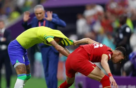 Na estreia do Brasil na Copa do Mundo 2022, durante uma disputa de bola na lateral do campo, Lukic e o camisa 10 da seleção se enfrentavam quando o sérvio agarrou o brasileiro e tirou a sua camiseta. Assista no final da matéria.