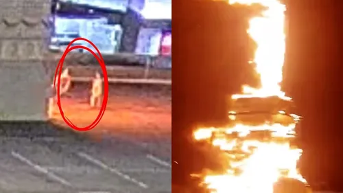Imagens de câmeras de segurança mostram dois suspeitos chegando ao local por volta das 2h e ateando fogo no monumento, que acabou reduzido apenas à estrutura metálica. Veja flagrante abaixo.
