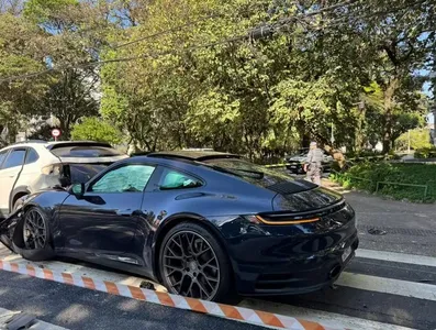 Porsche atinge carros parados em semáforo e deixa um ferido