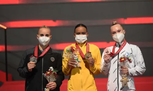 Dois meses após faturar ouro e prata na Olimpíada de Tóquio, a ginasta brasileira Rebeca Andrade voltou a fazer história na modalidade ao conquistar neste sábado duas medalhas - novamente ouro e prata - para o país em uma mesma competição. Desta vez, a paulista de Guarulhos foi a melhor no salto e vice nas paralelas assimétricas no Mundial de Ginástica Artística, em Katyushu (Japão).
