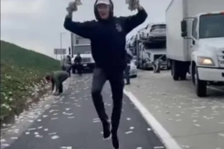 Na tarde da última sexta-feira (19), quem transitava pela Interstate 5, rodovia da Costa Oeste dos Estados Unidos, se deparou com uma situação inusitada: uma chuva de dinheiro. O caso aconteceu em San Diego, na Califórnia, depois que a porta de um carro forte se abriu e as notas se espalharam pela pista.