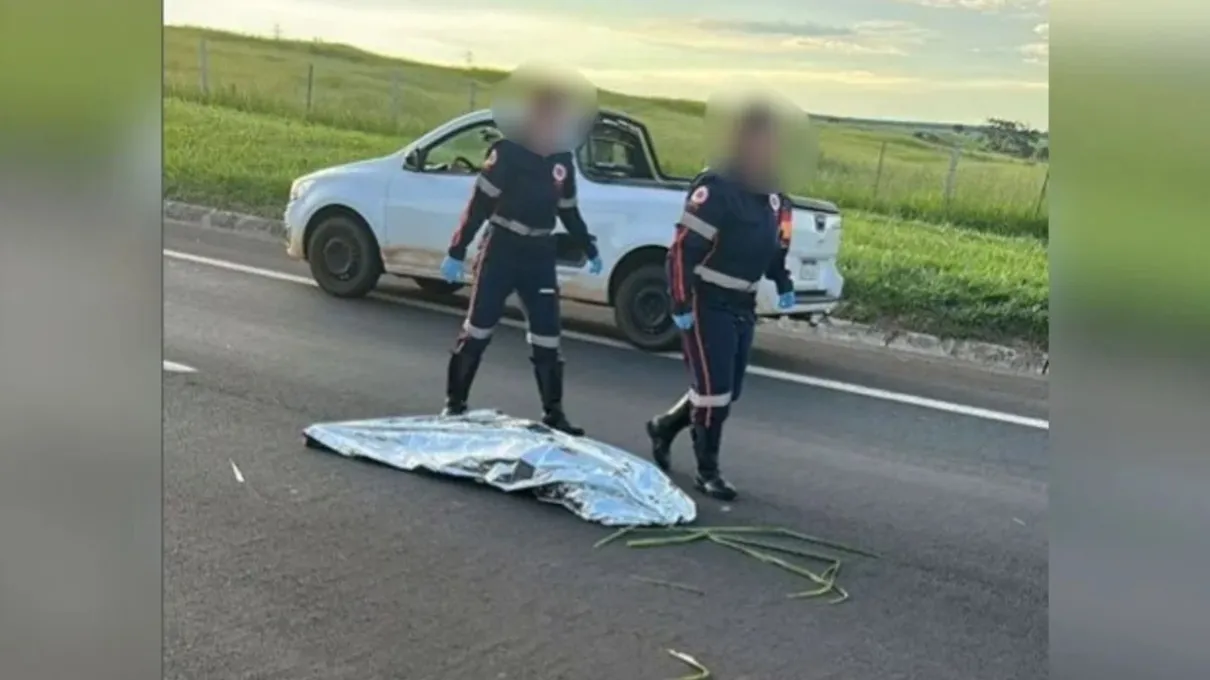 Após o atropelamento, a médica do Samu constatou o óbito no local. Seguindo o protocolo padrão para fatalidades, o corpo da vítima foi posicionado no acostamento e coberto por uma manta térmica.