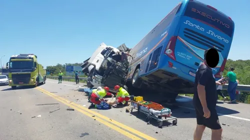 O acidente envolveu um ônibus que havia saído de Pelotas às 10h30 com destino a São Lourenço do Sul e uma carreta caçamba. A pista encontra-se totalmente bloqueada em ambos os sentidos. A EcoVias Sul solicitou apoio para o atendimento da ocorrência.