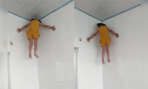As imagens exibem uma criança de conjunto amarelo e cabelo preso em duas “marias-chiquinhas”, subindo as paredes do quarto. O registro foi feito na província de Jilin, no leste da China, e publicado pela mãe da menina em agosto do ano passado, porém, a publicação viralizou no Brasil nesse domingo (30).