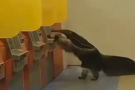 Tamanduá é flagrado "tentando sacar dinheiro" em banco; veja vídeo
