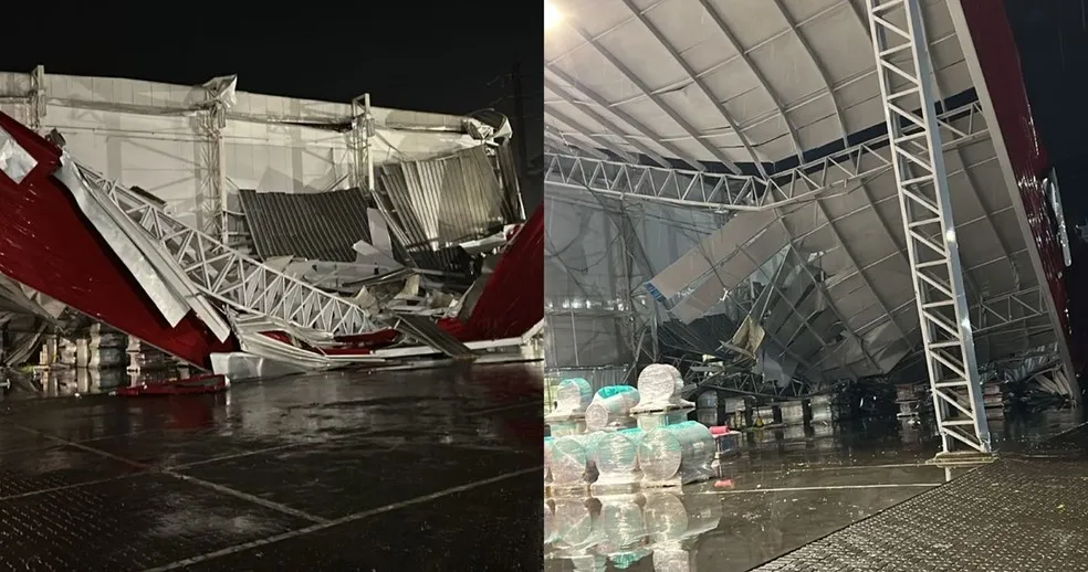 Imagens de câmeras de segurança e vídeos registrados por moradores mostram a intensidade do vento. Em uma empresa de plásticos, parte do telhado e das paredes cedeu, danificando produtos e computadores. Em um posto de gasolina, objetos foram arrastados pela área externa.
