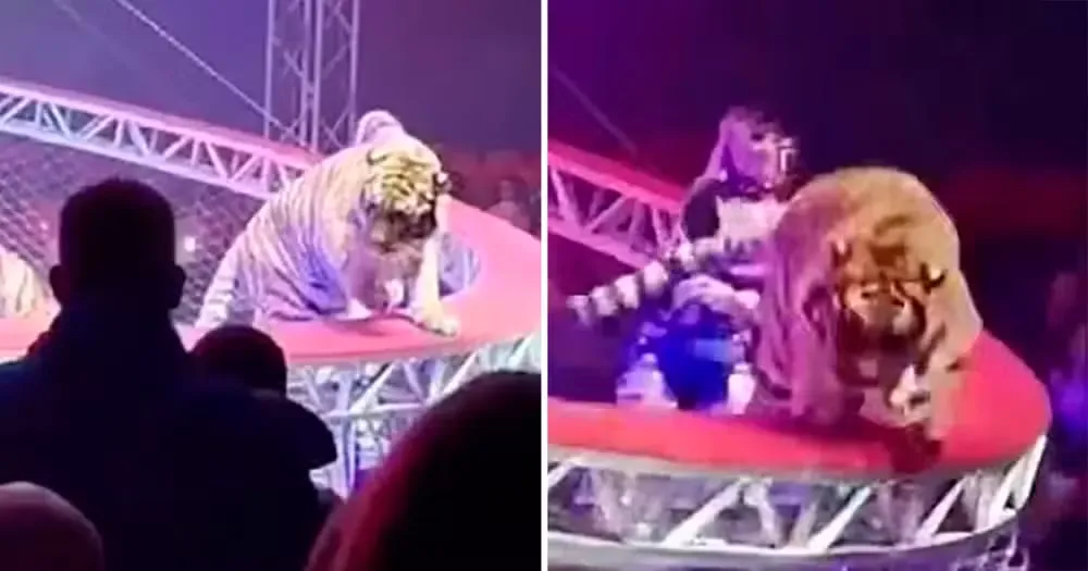 Tigre escapa de rede de proteção e pula na plateia durante espetáculo de circo; vídeo