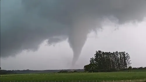 Um tornado foi registrado no final da tarde de domingo (15) em Encruzilhada do Sul, na Região dos Vales, no Rio Grande do Sul. O fenômeno ocorreu por volta das 18h35 na localidade de Arroio Abranjo, após a formação de nuvens carregadas e baixas. Moradores registraram em vídeo o momento exato em que o funil tocou o solo, confirmando a transição de uma nuvem de tempestade para um tornado consolidado.
