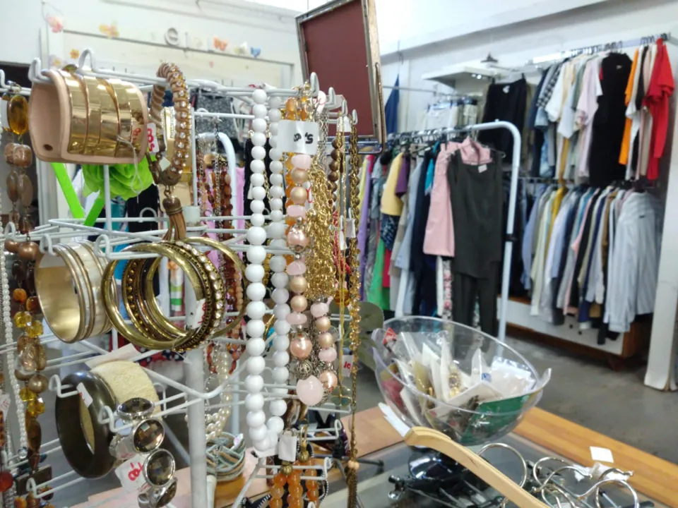 Além do vestuário, tem utensílios de cozinhas, brinquedos, livros, objetos decorativos e até móveis.