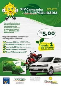A campanha vai até o dia 16 de abril. Já o sorteio acontece no dia 30 de abril de 2019, na sede da Cocari, em Mandaguari. Esta é a 14ª edição da campanha realizada pela Cocari. Participe e ajude a ajude a transformar realidades.