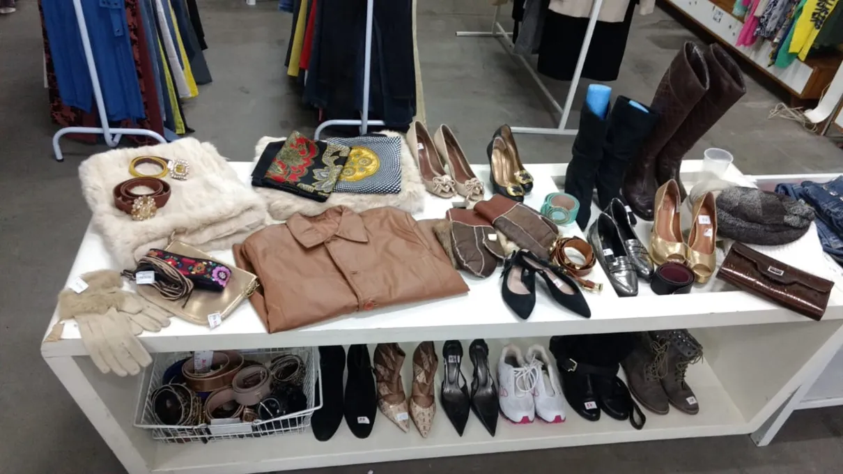 O bazar deste sábado também separou várias peças para aquecer os dias frios. São casacos de lã, cacharel, segunda pele, jaquetas e blusinhas manga longa. E na seção de calçados também há várias opções que atendem desde o dia a dia até um evento mais sofisticado.