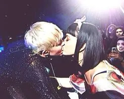 Miley Cyrus beija Katy Perry na boca durante o seu show