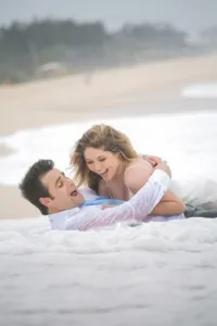 “Esse dia é muito importante para nós dois, estou curtindo tudo. Estou muito ansioso, parece que sou a noiva”, contou Rodrigo, que é um noivo participativo. “Ele dá sua opinião em todos os detalhes, tudo terá nosso jeitinho. O Rodrigo é um presente”, elogiou Gabi. Os dois fizeram um ensaio pré-casamento em Copacabana, no Rio.