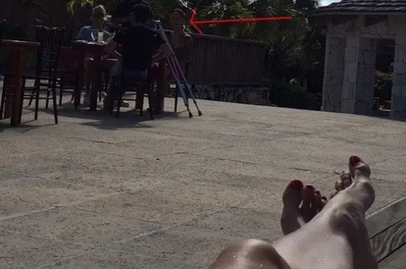 No Instagram, a modelo e apresentadora brincou com o encontro. — Tomando um solzinho com vista para???? Advinha quem está ai no fundo de muletas???