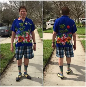 Para completar o "look" tradicional de férias do meu pai, (camisa florida