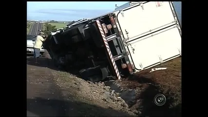 Um caminhão tombou após colidir com o ônibus da dupla Milionário e José Rico, na Rodovia Raposo Tavares, em Ibirarema(SP). Da dupla, apenas o músico Milionário estava no veículo, mas não ficou ferido.