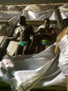 Ao longo da alegoria, há esculturas de pessoas transando. Sem nunca terem se visto antes dos ensaios, os destaques Val Neves, de 47 anos, e Alex França, de 37, garantem estarem em sintonia perfeita. Elas vão usar e abusar de beijos na boca e mãos nas partes íntimas.