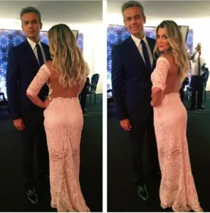 Flávia Alessandra usa vestido decotado em festa de 15 anos da filha