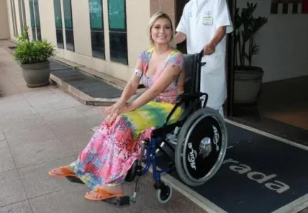Após nova infecção nos glúteos devido a bioplastia que injetou PMMA em seu corpo, Andressa Urach deixou o Hospital Alvorada, em são Paulo. Com dificuldades de andar a apresentadora contou com a ajuda de uma cadeira de rodas e foi para casa com um cateter no braço. Diariamente Andressa receberá uma dose de antibiótico através do cateter.