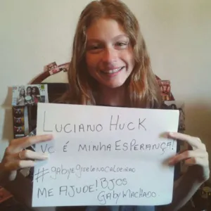 Gabriela Machado, mais conhecida como a sósia de Gisele Bündchen, foi até o Instagram nesta sexta-feira (17) para fazer um apelo a Luciano Huck. Segurando um cartaz, a modelo mirim pediu ao apresentador para realizar um sonho, o de conhecer a über model. "Luciano Huck, você é minha esperança! Me ajude, beijos".