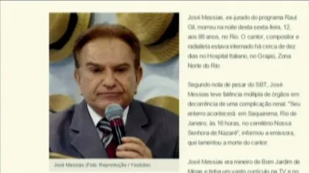 José Messias nasceu em 7 de outubro de 1928, no município de Bom Jardim de Minas, em Minas Gerais. O enterro está previsto para acontecer às 16h no Cemitério Nossa Senhora de Nazaré, em Saquarema, na Região dos Lagos.