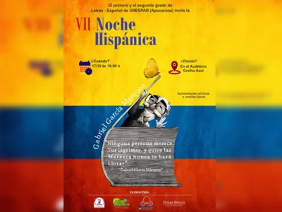 O primeiro e segundo ano de Letras Espanhol promove nesta terça-feira (17) a 7ª Noite Hispânica, no Auditório Gralha Azul, da Universidade Estadual do Paraná (Unespar), campus de Apucarana.