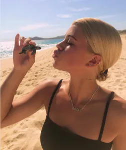 “Mudanças recentes nas leis ambientais do México explicitam que não é mais aceitável que os hóspedes peguem tartarugas marinhas”, alerta a página do resort. Na foto compartilhada por Sofia, a celebridade de 19 anos aparece com um filhote de tartaruga nas mãos. “O enviando para o mundo”, escreveu a modelo na legenda da imagem.