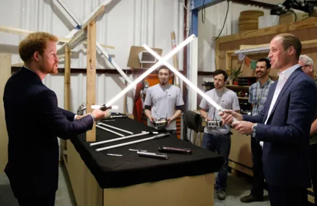 Na ocasião, foram divulgadas inclusive na conta do Instagram do Palácio de Buckingham fotos dos irmãos no set de filmagem brincando com espadas de sabre e ganhando abraços do personagem Chewbacca.