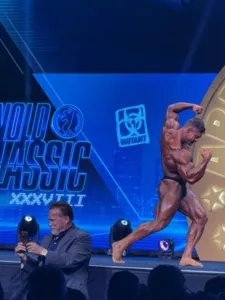 Ao longo da noite, Schwarzenegger repetiu a atitude ao registrar também a apresentação individual do norte-americano Sam Sulek. Ele ainda interagiu com competidores durante a primeira comparação física da categoria Open, que contou com atletas como Andrew Jacked, Hadi Choopan, Nick Walker e Martin Fitzwater.
