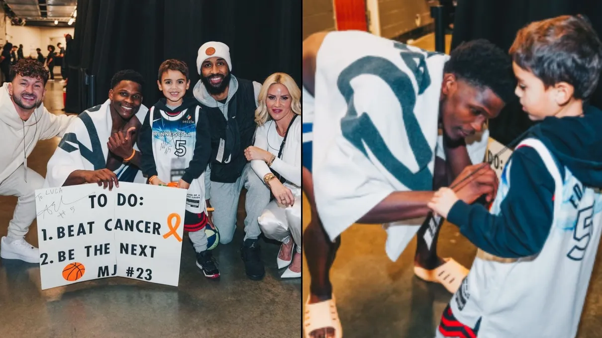 Anthony Edwards havia recepcionado o jovem torcedor após um jogo diante do Detroit Pistons, no qual bateu seu recorde de pontos, com 55, no vestiário do Target Center, em Minneapolis, a pouco mais de um ano. Autografou a camisa do garotinho com seu número, trocou umas palavras e ainda posou ao lado de uma faixa de inspiração. "A fazer: vencer o câncer e ser o próximo MJ (Michael Jordan) 23", trazia Luca, ao lado do astro e de seus pais.