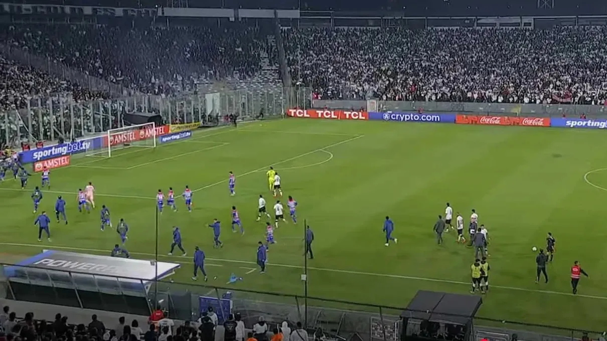 Aos 69 minutos de jogo, a partida foi interrompida quando torcedores da arquibancada lançaram objetos. Ao minuto 72, torcedores chilenos invadiram o campo, forçando a delegação do Fortaleza a se retirar rapidamente em direção aos túneis próximos aos vestiários para garantir a segurança dos jogadores e equipe.