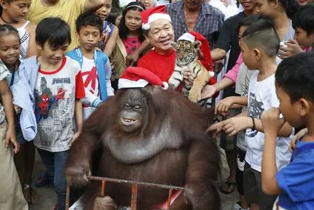 O Malabon Zoo, nas Filipinas, celebrou o Natal, nesta quinta-feira, com uma festa dedicada a cerca de 200 crianças órfãs e que contou com os animais "vestidos" de Papai Noel. Durante a "Festa de Natal Animal", os pequenos puderam interagir com um filhote de tigre chamado Len-len e com o orangotango Pacquiao.