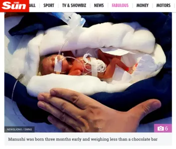 O jornal britânico The Sun apresentou ao mundo recentemente a história de Manushi, uma menina indiana que veio ao mundo em junho de 2017 pesando apenas 396 gramas. A prematura extrema recebeu uma estimativa de apenas 0.5% de chances de sobrevivência ao nascer. Hoje com 6 meses de vida, ela está prestes a ter alta do hospital, sem sequelas graves para seu desenvolvimento.